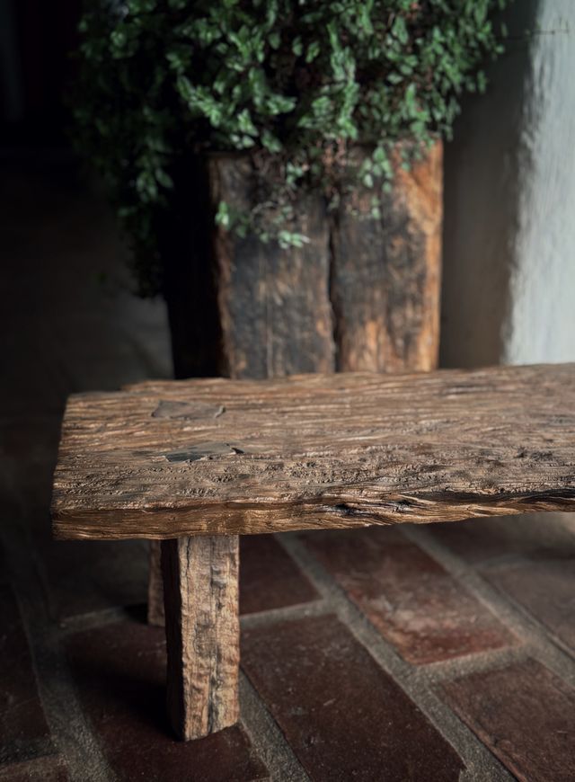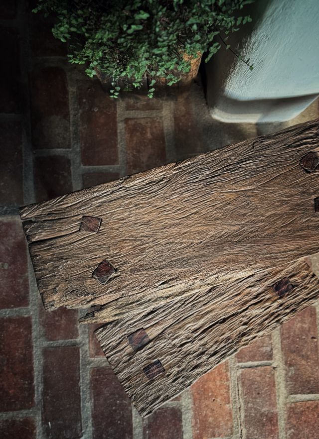 Con una madera que ha tenido una larga espera, en donde su textura se observa el paso del tiempo, que fue marcado por la naturaleza, por el sol, la lluvia y el viento.