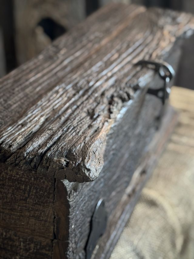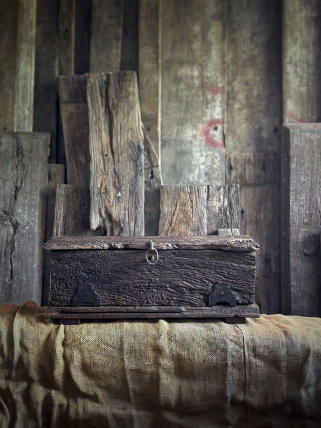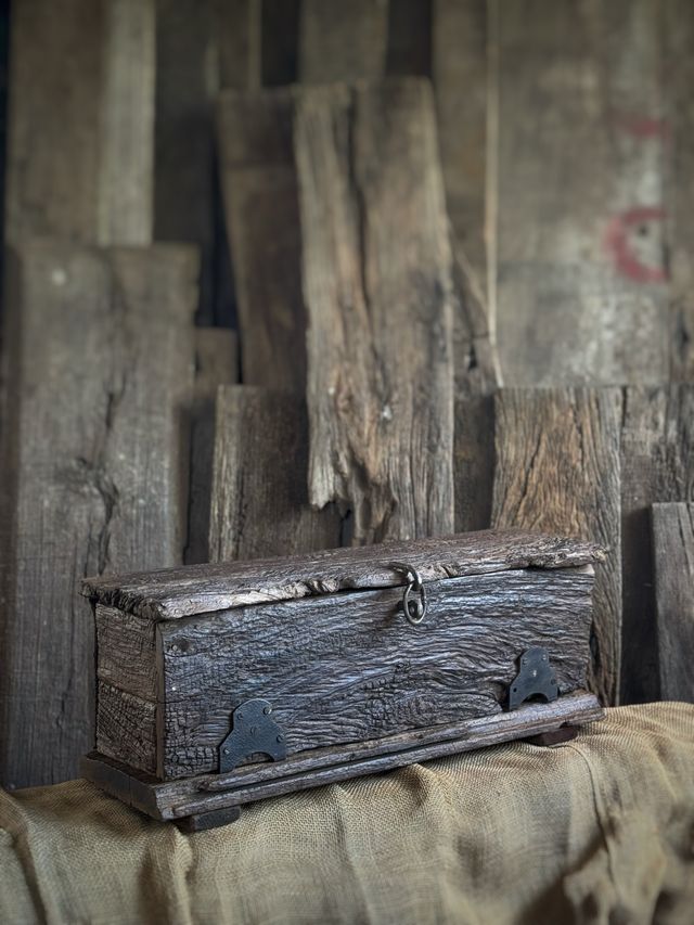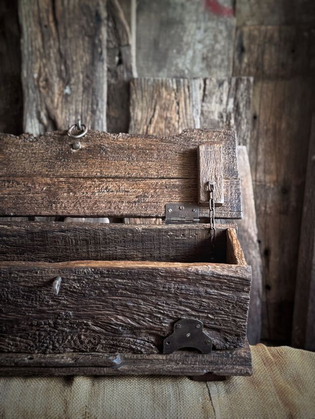 Observar, interpretar, crear, poner en valor esa madera que fue olvidada . Encontrarle un nuevo y hermoso uso. Llenos de emociones revalorizamos el material que llega a nuestras manos. Asi Julio pudo contruir este Baul, uniendo maderas antiguas con detalles que conservan el paso del tiempo.