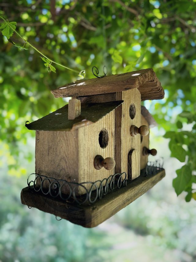 Un encanto para dar hogar a las aves que viven en nuestro jardin. Con detalles en hierro y madera, se pudo crear esta pequeña belleza.