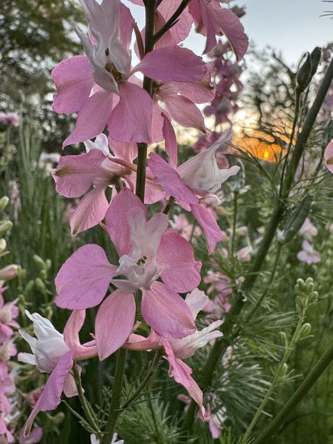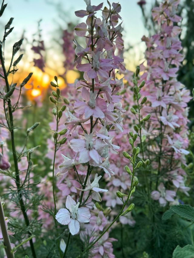 Nuestro jardin, ha dado flores de espuelas rosadas, no se ha polinizado en otro tono.