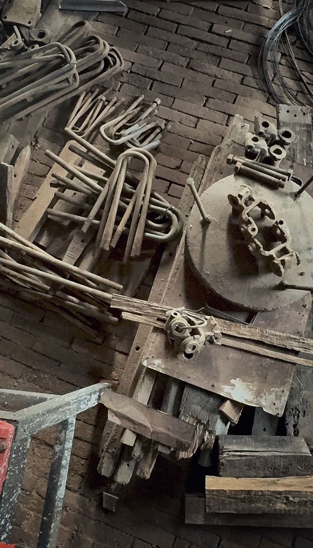 Sus patas son de hierros U que proceden de lugares donde el buscar materiales desechados es un juego maravilloso.